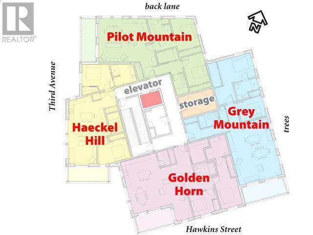 Now selling! Welcome to Third & Hawkins, Whitehorse's newest and greenest condo development, focused on a sense of community, environmental values and location-location-location. This 6-storey building has 20 suites, each offering multiple exterior walls, private balconies, views, natural light and high ceilings. Third & Hawkins is designed for low impact living and unparalleled efficiency with a 51 kW solar power system, high insulation, triple-pane windows, high level soundproofing between suites, and a system for heating and cooling that integrates a central HRV and closed-loop water-to-air heat pumps. At 1269 square feet, this third-floor Grey Mountain suite features 2 bedrooms, 2 bathrooms, an open concept living room, dining room, den and kitchen with Caesarstone counters, master with ensuite, large entry, laundry room and outdoor, covered parking. With 3 exterior walls, you'll enjoy north, south and east views. (id:6769)