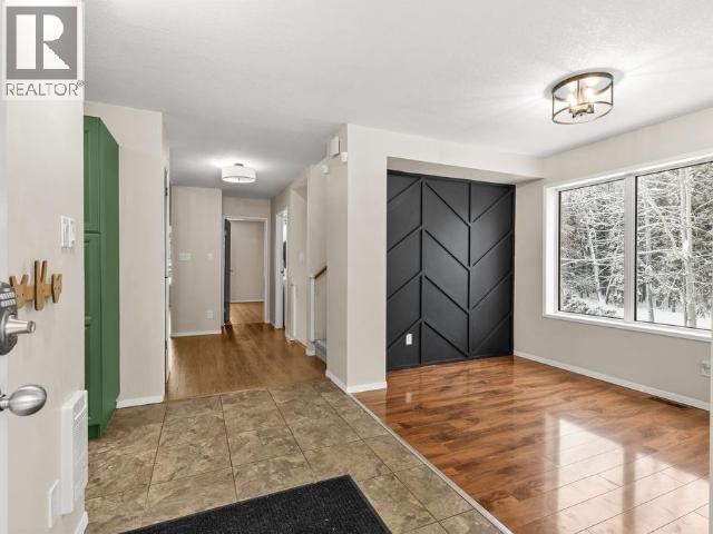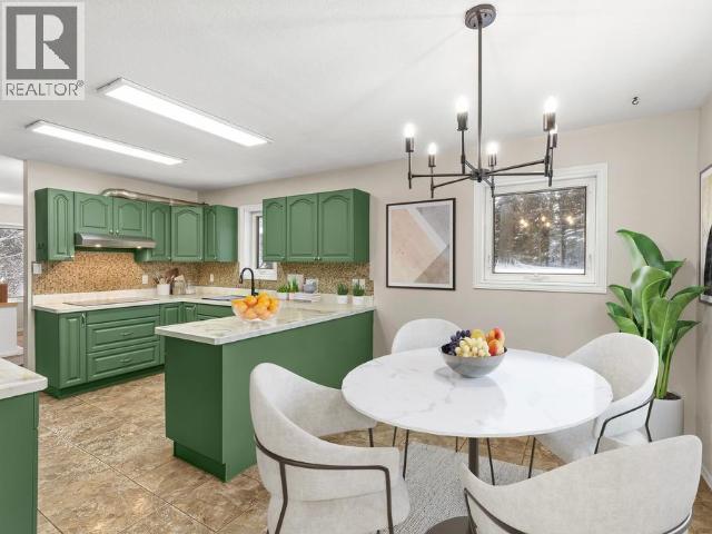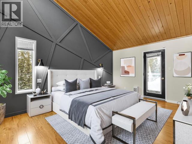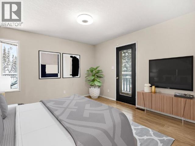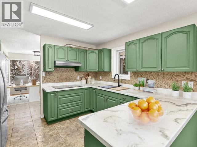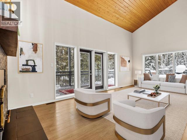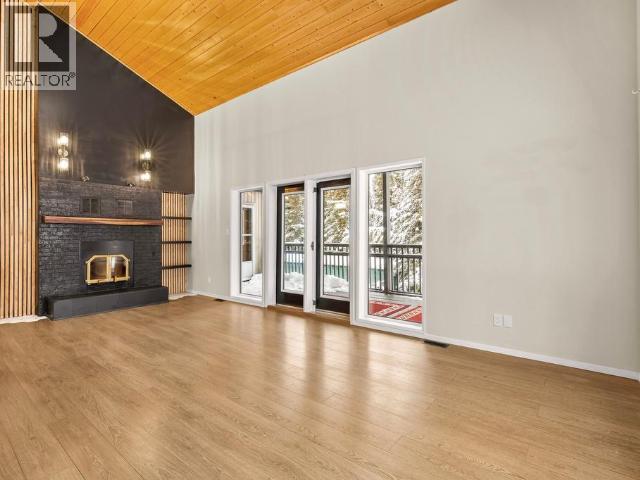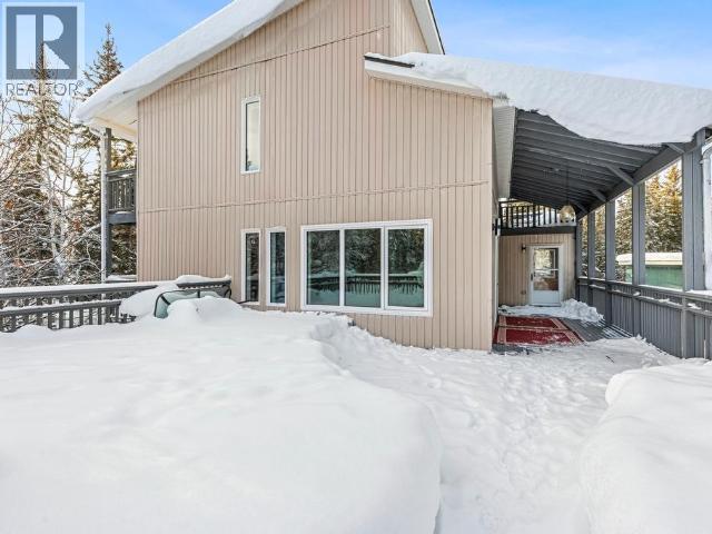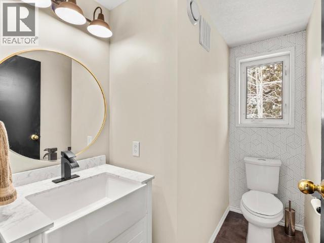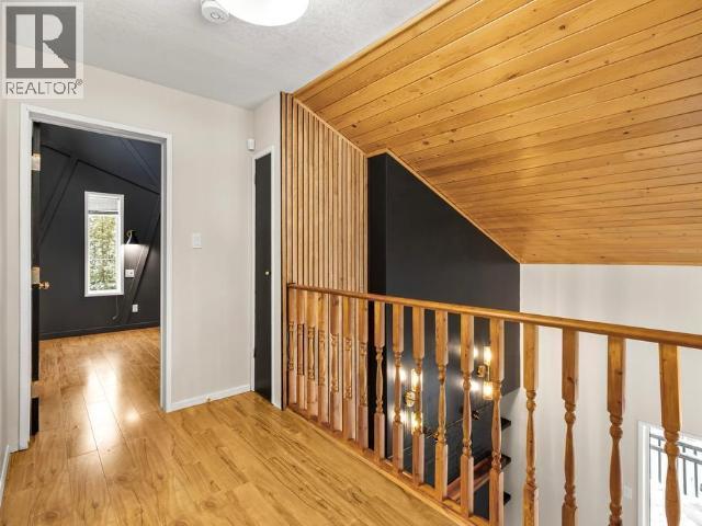 Contemporary 4-bed, 4-bath, 2,800 sqft home son 2.47 private acres in Pine Ridge. The main level offers a refreshed kitchen with dining space and access to the back deck, a formal dining or flexible space, a bright, open living room with vaulted ceilings and a striking wood-burning fireplace feature wall, overlooking the south-facing deck and fully fenced yard. A secondary bedroom with private deck and a convenient half bath complete the level. Upstairs, the primary suite features a walk-in closet, tiled-shower ensuite, and private deck, along with an additional bedroom with private balcony and a full bath. The full walk-out basement provides excellent guest or suite potential with kitchen, living area, bathroom, laundry, separate entry, and fenced area. Extensive upgrades since 2022 include electrical, windows, doors, decking, kitchen, bathrooms, radon mitigation, and water treatment. Detached shop, ample parking, approved septic, 175' well, and quick possession available. (id:6769)