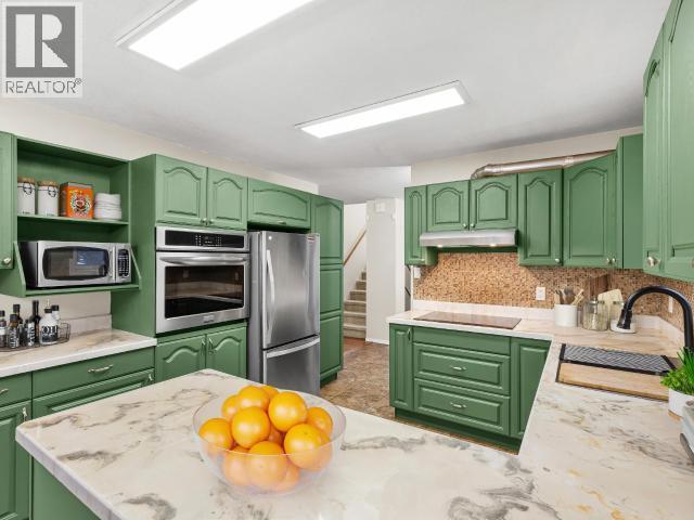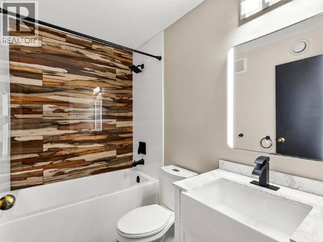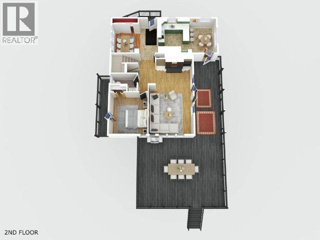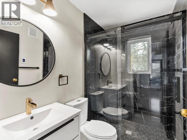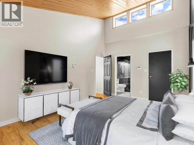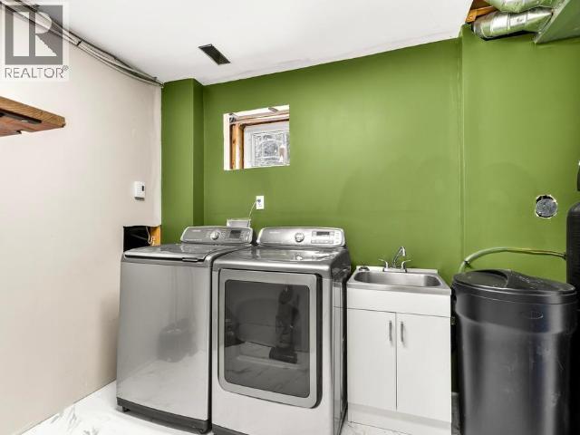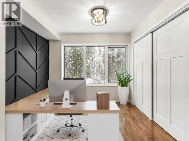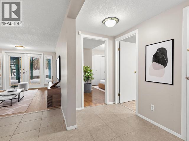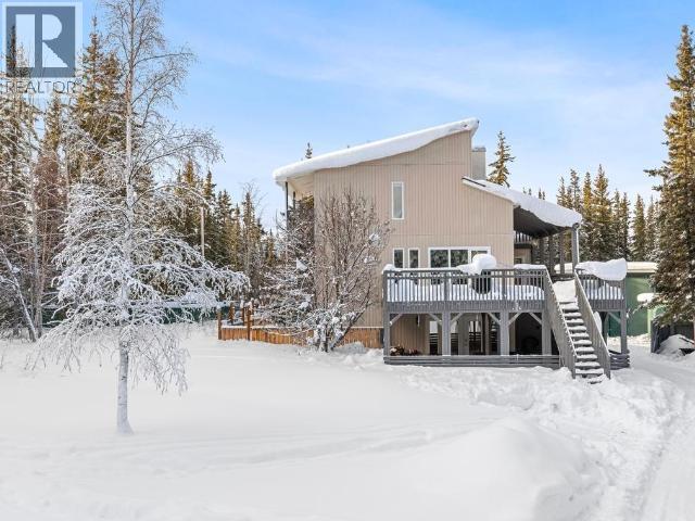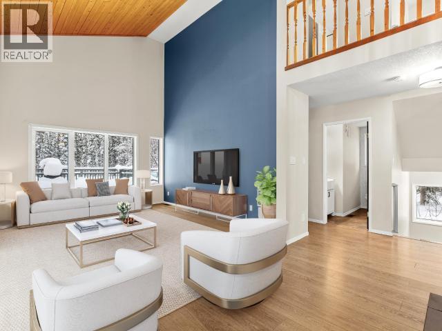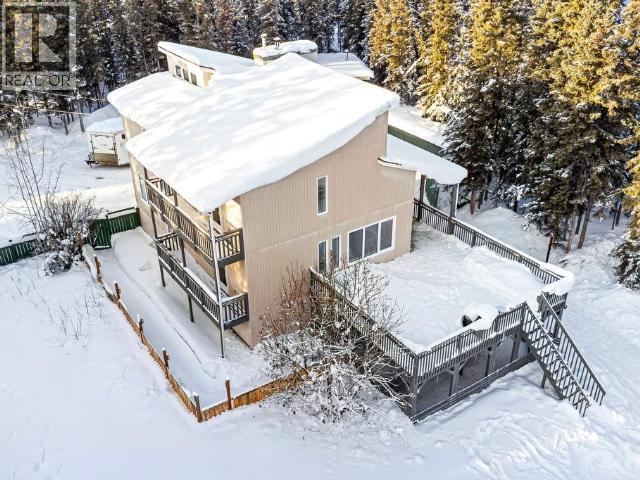 Contemporary 4-bed, 4-bath, 2,800 sqft home son 2.47 private acres in Pine Ridge. The main level offers a refreshed kitchen with dining space and access to the back deck, a formal dining or flexible space, a bright, open living room with vaulted ceilings and a striking wood-burning fireplace feature wall, overlooking the south-facing deck and fully fenced yard. A secondary bedroom with private deck and a convenient half bath complete the level. Upstairs, the primary suite features a walk-in closet, tiled-shower ensuite, and private deck, along with an additional bedroom with private balcony and a full bath. The full walk-out basement provides excellent guest or suite potential with kitchen, living area, bathroom, laundry, separate entry, and fenced area. Extensive upgrades since 2022 include electrical, windows, doors, decking, kitchen, bathrooms, radon mitigation, and water treatment. Detached shop, ample parking, approved septic, 175' well, and quick possession available. (id:6769)