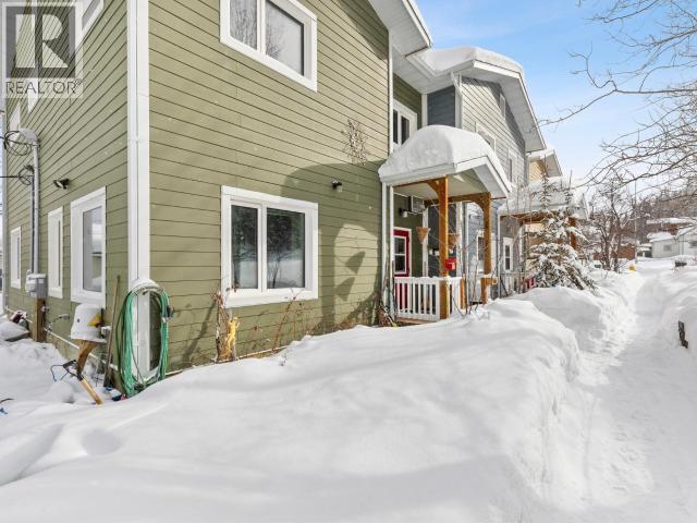 Discover this super-green downtown townhouse featuring three generously sized bedrooms and one and a half baths. The main floor is graced with nine-foot ceilings, natural light and views of Cook Street Park and the clay cliffs that comprise the front yard of this tucked away downtown haven. Upstairs comprises three generous, whimsical bedrooms and an attractive tiled bathroom. Washer, dryer and fridge are under two years old. This super solid build "for the North" has exceptional insulation--R56 in the walls and R80 in the ceiling plus quadruple-glazed, argon-filled, low-e windows for maximum energy efficiency. Electric heat and lighting costs average only $318 per month. Condo fees are just over $300, with $100 allocated to the reserve fund. Ideally located on a greenbelt with hiking and biking trails right outside your door, this home is within walking distance of schools and shopping, offering the very best of downtown living. Don't let this one get away. (id:6769)
