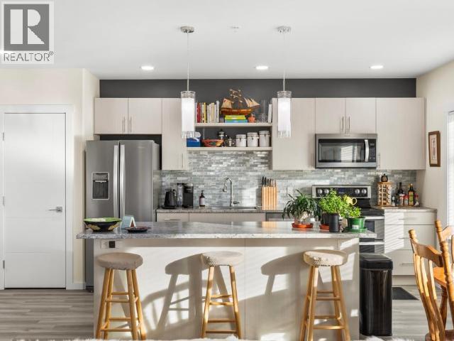 Bright, immaculate on Southeast corner! This stylish 2-bed, 2-bath corner unit offers 1,186 sq ft of contemporary living with morning sun and mountain views plus a South-facing balcony. The open-concept design features a sleek galley kitchen with soft-tone cabinetry, light countertops, stainless steel appliances, a pantry, and an island with bar seating--great for entertaining! Vinyl plank flooring flows throughout, leading to the primary suite with a walk-in closet and 3-piece ensuite with spacious w/i shower. A well-sized second bedroom, full secondary bathroom, laundry closet, and generous entry with a large, functional closet complete the space. Includes one powered parking spot and an exclusive-use storage locker. Prime Takhini location with easy access to transit, trails, the Canada Games Centre, and downtown amenities. With condo fees of $463/month covering essential services, this energy-efficient condo offers a balanced blend of style, comfort, and convenience! (id:6769)
