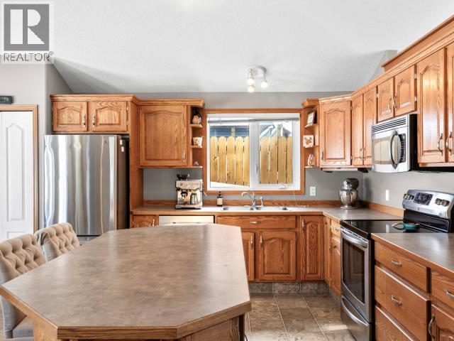 Split-level smart. Copper Ridge classic. Views included. This is 82 Keewenaw Drive--a quality Empress-built home offering nearly 2,200 sqft of well-designed living across three levels. This 4-bed, 3 bath layout delivers the separation and flow today's families are after, with vaulted ceilings connecting the kitchen, dining area, with a formal living room, complete with a side of mountain views. Upstairs; a primary bedroom with walk-in closet, full ensuite with jetted tub and separate shower, plus two additional bedrooms and a full secondary bath. The lower level offers a cozy family room with propane fireplace, 4th bedroom, 4pcs bath, laundry, and direct access to the heated double garage. Outside, fully fenced and landscaped backyard includes a generous deck with future potential (sauna negotiable) and privacy trees. Out front, a concrete drive, RV parking, and evening sun. Well maintained and shows great. Smart layout, solid home, with practical family function. (id:6769)