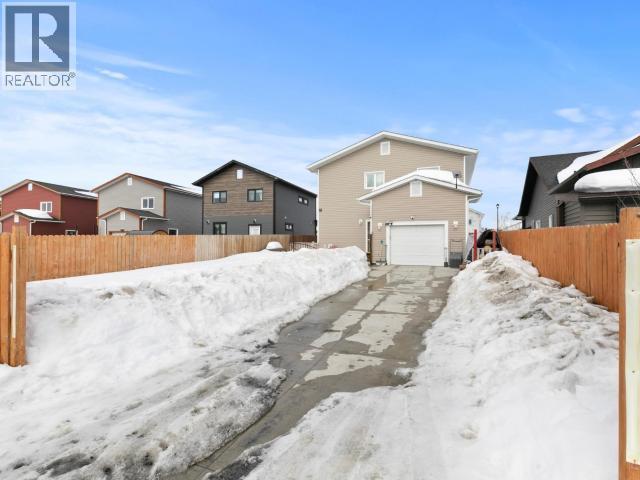 Smart layout. Serious family function. 129 Sybil Circle delivers 2,495 sqft of practical, well-designed living in Whistle Bend. This 4-bedroom, 2.5-bath home offers an open-flow main floor with a mix of maple hardwood and character lino flooring, plus a cozy wood stove with built-in bench seating. The kitchen is built for real life--plenty of space for cooking, gathering, and everything in between. A laundry/utility room, 2pc bath, and sensible front and back entries round out a main level that just works. Upstairs features a spacious primary suite with walk-through closet and ensuite, three additional bedrooms, a full secondary bathroom, and a bonus second living area--ideal for a playroom, home office, or flex space. Outside, enjoy a south-facing fenced yard with concrete patio, covered front porch, heated garage, extended concrete driveway, and extra parking. 'Super Green' construction with R40 walls, R80 attic, and quad-pane windows. Energy-efficient, functional, and ready to go! (id:6769)