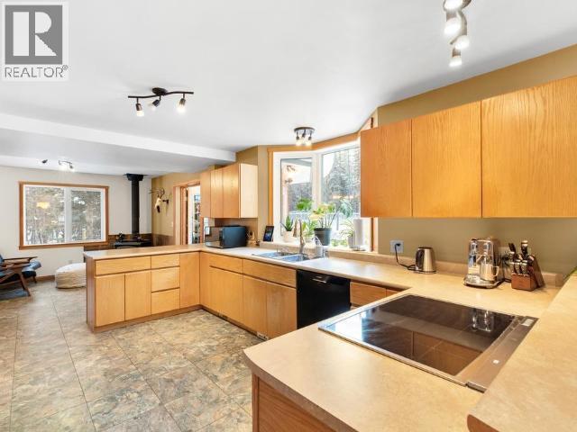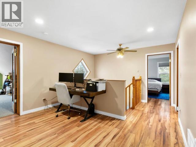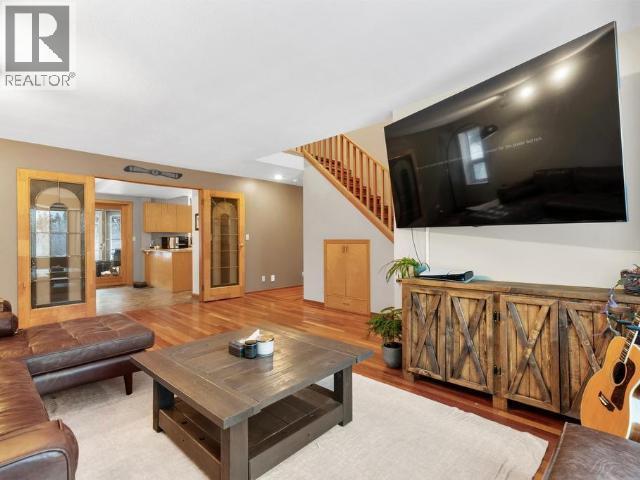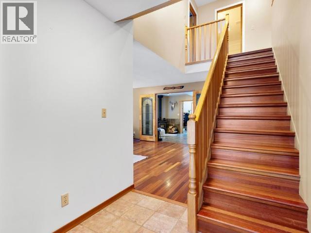 Country residential home offering nearly 2,800 sq. ft. of well-maintained living space on a private 3.25-acre greenbelt lot. The property enjoys open mountain views, good privacy, and a practical layout suited to family living. A tiled entry leads to a formal living room with French doors opening to a den with a wood stove. The bright country kitchen offers generous cabinet and counter space and connects to a dining room sized for larger gatherings. The main floor also includes a powder room and a laundry/utility area with access to the attached double garage. Upstairs are four bedrooms, including a primary with walk-in closet and ensuite, along with three well-sized secondary bedrooms. A large rec room above the garage is accessed from a bonus landing area. Outside, there is ample parking and direct access to nearby trails. (id:6769)